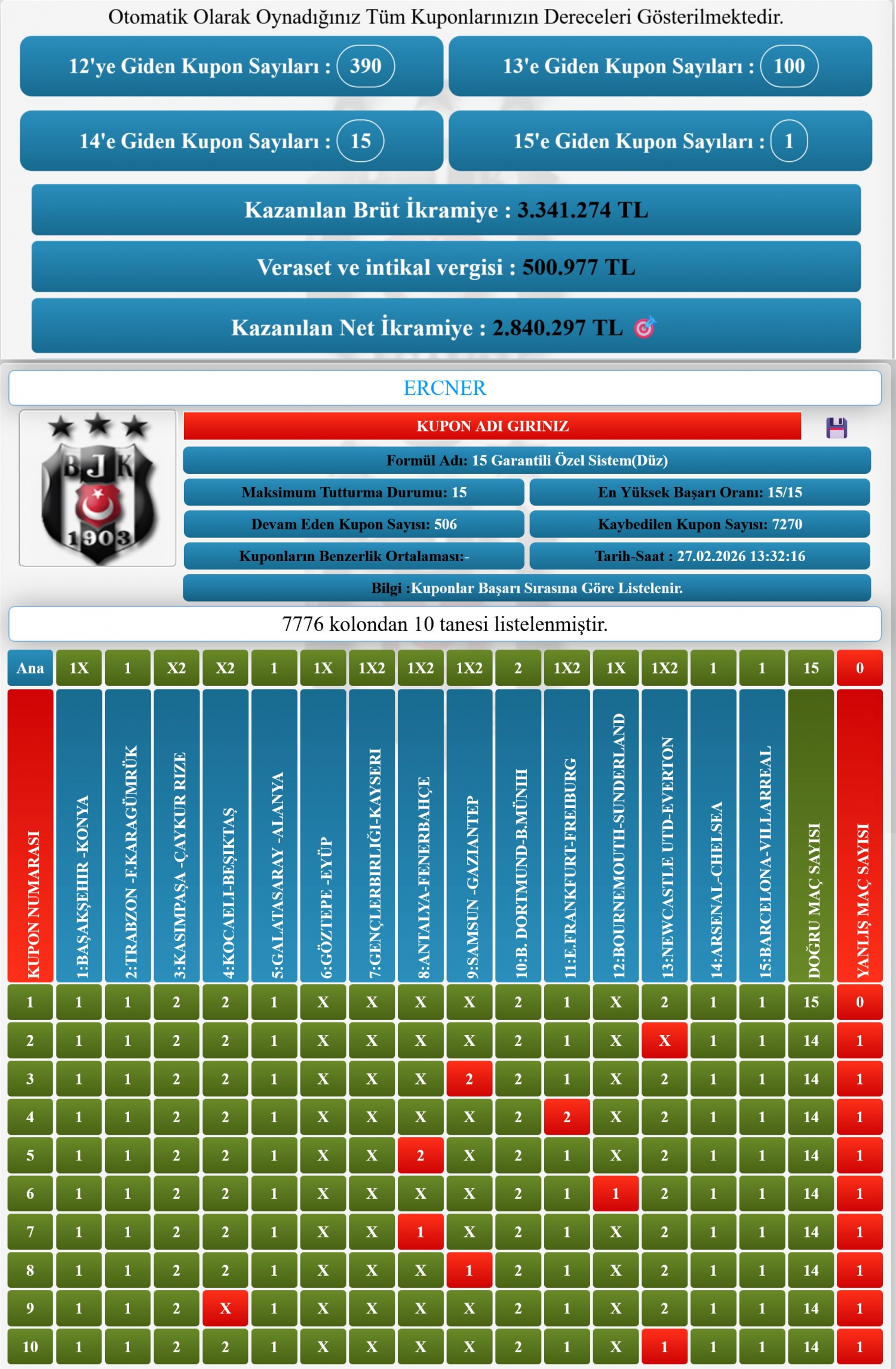 15 bilen 2 ustamızda 7776 kolon oynamış ikiside 15 garantili ne güzel bir tesadüf hayrını görsünler